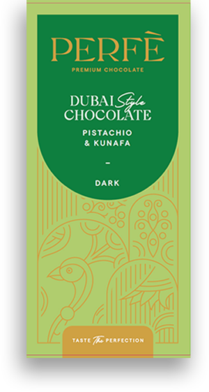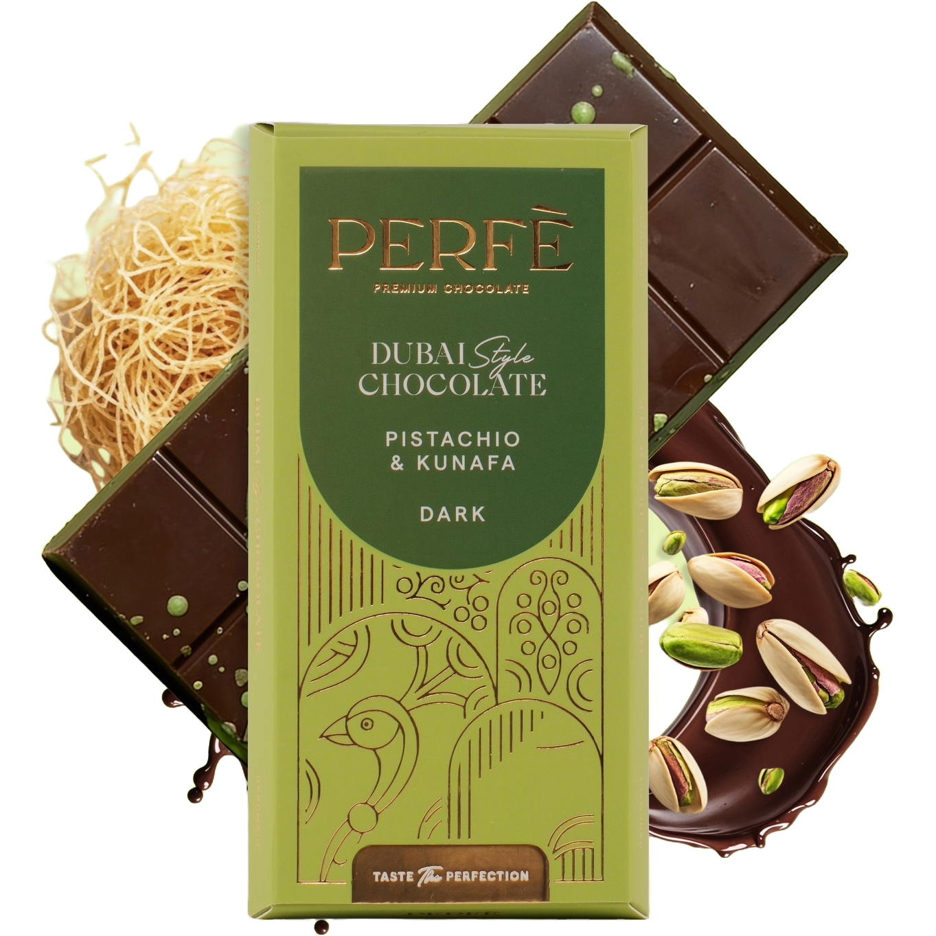 Dark chocolate + pistachio cream 35% + kunafa and tahina.