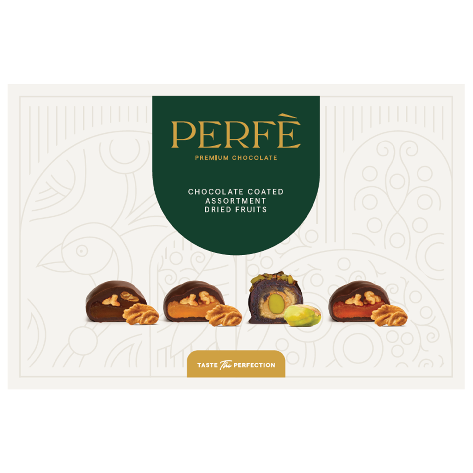 Chocolate-coated dried dates with pistachio & kunafa (Dark Milk White mix)